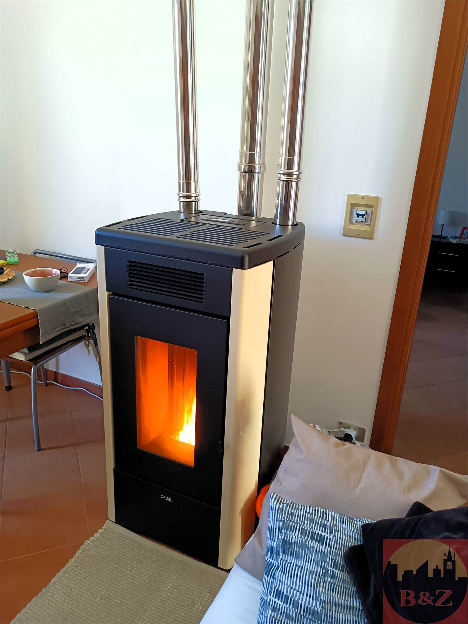 Riscaldamento autonomo con stufa a pellet di ultima generazione per un calore efficiente e naturale.