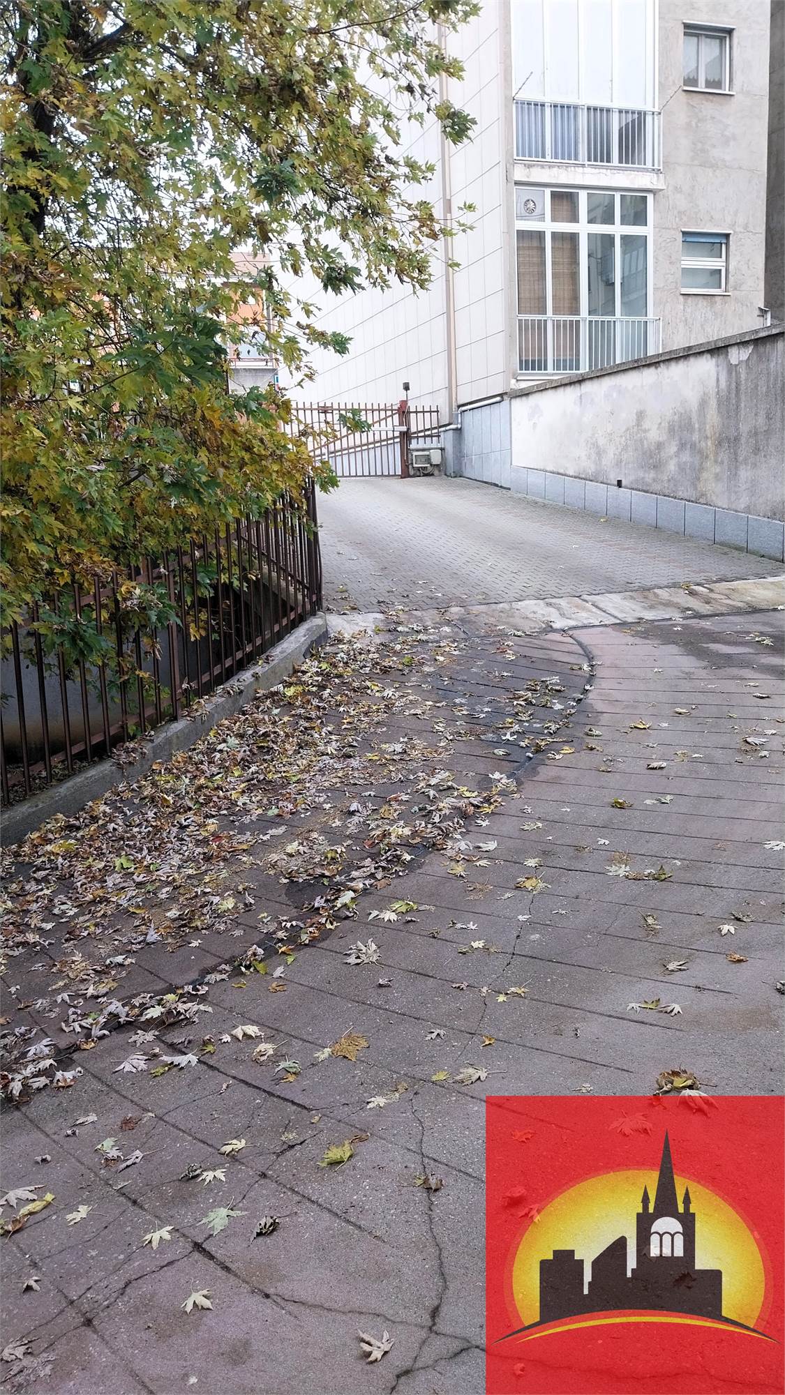 Dolce rampa di discesa, cancello condominiale automatico, facilità di manovra.